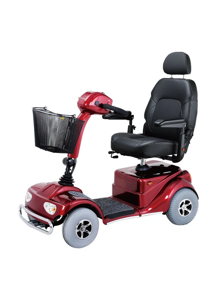 Introducing the Merits Pioneer 4 S141 Four Wheel Electric Scooter. With its four wheels, this scooter provides stability and a smooth ride. Perfect for those looking for an easy, comfortable, and reliable mode of transportation. Enjoy the freedom of mobility with this exceptional electric scooter.