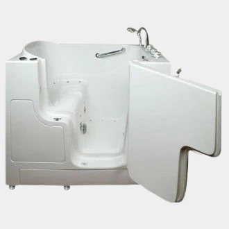 The Mb Tubs Premium Wheelchair Transfer Walk In Bathtub was designed to provide a safe and luxurious way for those who are wheelchair bound to bathe comfortably in the home and maintain their independence. This model allows bathers to transfer seamlessly from a wheelchair or seat into the tub through the tub’s specially designed 34-inch doorway just by sitting down on the tub seat and swinging in their legs. ADA compliant ergonomics and plumbing fixtures ensure a comfortable experience. The grab bar is strategically placed where you need them for maximum support and safety. You can choose from left or right hand side door and drain. Comes with 18 heated therapeutic air jets, 6 pressure point water jets and a heated backrest to keep you warm as the water fills and drains.