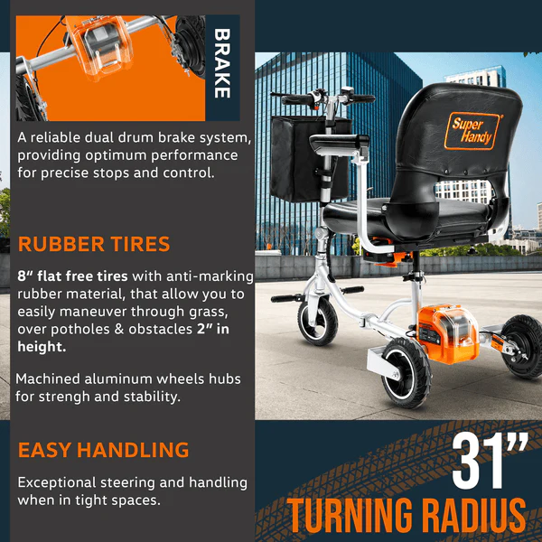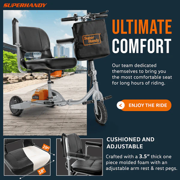 Upgrade your mobility with the SuperHandy Mobility Scooter Plus and its powerful 48V 2Ah battery. With increased battery life and efficiency, you can go further and faster while riding in comfort and style. Perfect for those looking for a reliable and convenient mode of transportation.